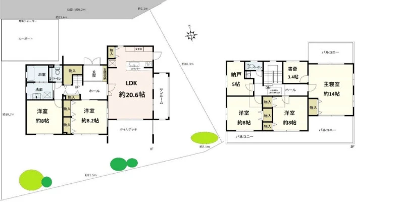 | 設備 | トイレ2箇所、浴室乾燥機、食器洗浄乾燥機、床暖房、防犯カメラ、駐車2台可、上水道、都市ガス、下水道、太陽光発電/温度センサー付換気扇/電動シャッター付カーポート | ||