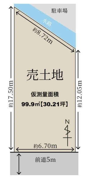 ※北側:水路 ※前道公私道 ※公簿面積98.41㎡ |