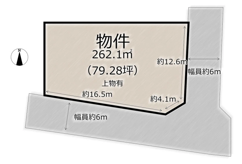 角地 南 間口16.5m 幅6m 東 間口12.6m 幅6m |