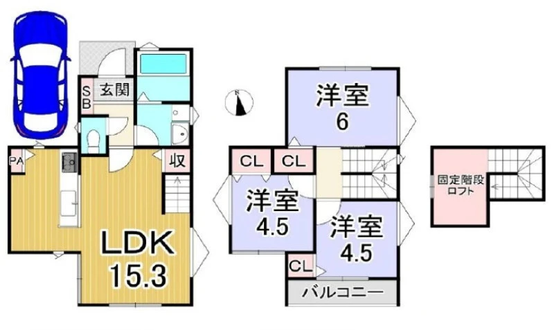 設備 | 南面バルコニー、上水道、下水道、電気、都市ガス、固定階段式ロフト | ||