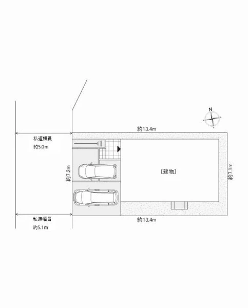 一方 西 間口7.2m 私道 幅5m |