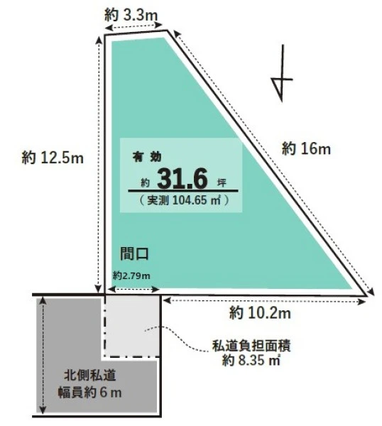 | 土地面積 | 104.65㎡(実測) | 私道面積 | 8.35㎡ |