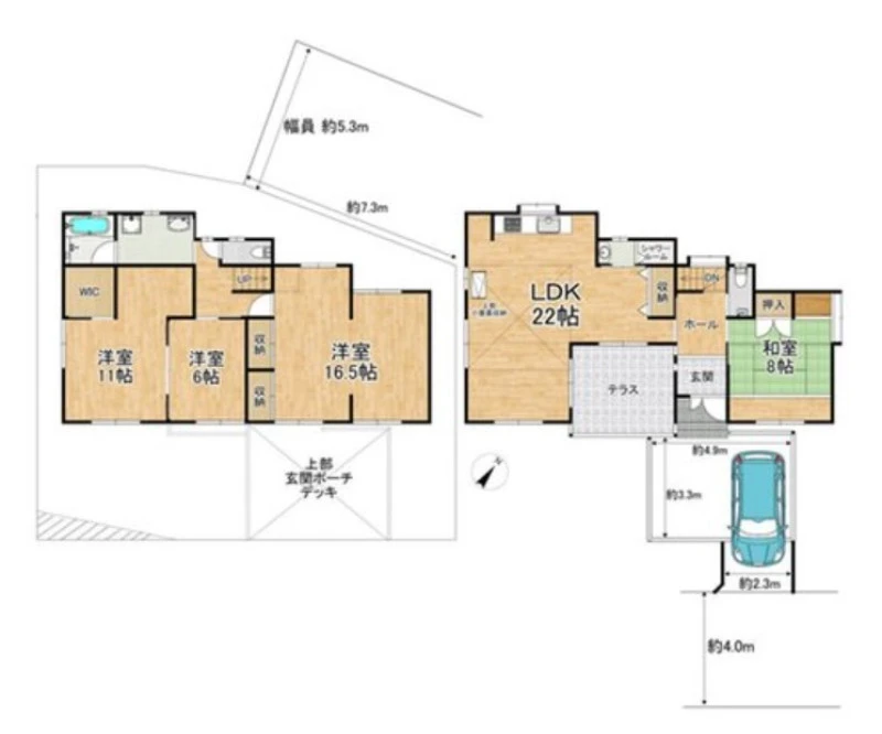 | 設備 | 上水道、下水道、都市ガス、電気、テラス、ウォークインクローゼット、シャワールーム、小屋根収納 | ||