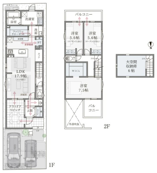 | 設備 | トイレ2箇所、上水道、下水道、都市ガス、ウッドデッキ、床暖房、2面バルコニー、南面バルコニー、ウォークインクローゼット、シューズインクローゼット、ファミリークローゼット、パントリー、幹太くん、ヌック | ||