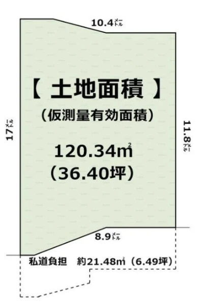 | 土地面積 | 120.34㎡ | 私道面積 | 21.48㎡ |