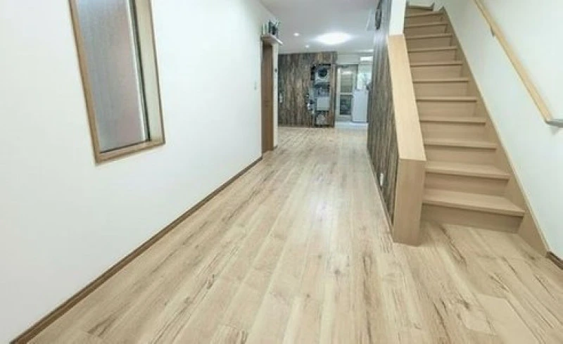 ・玄関・廊下・階段/階段新設、天井・クロス貼り、床フローリング張り、玄関ドア新設