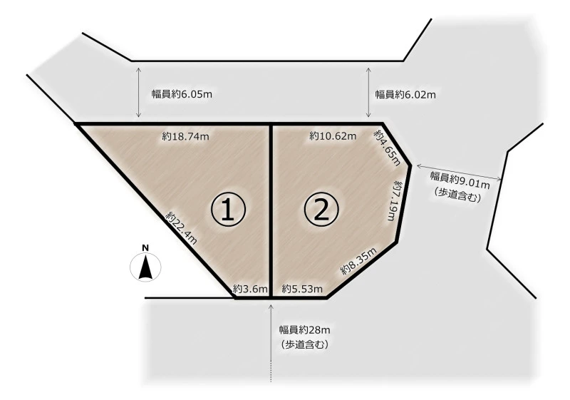 諸条件・相談 ※南側道路:幅員約28m(歩道含む)
