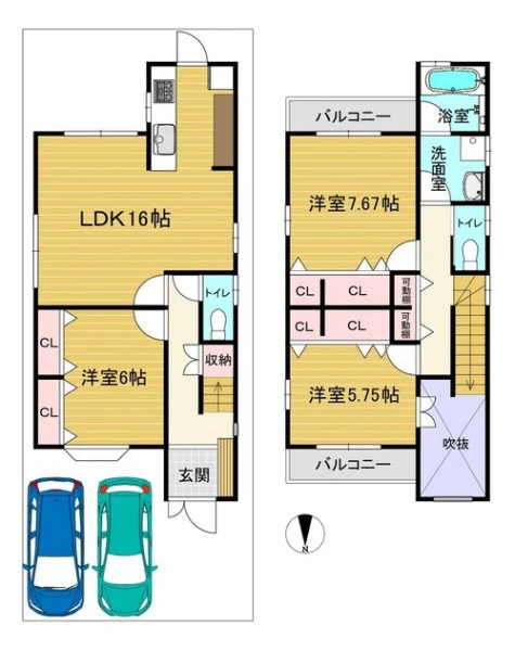 | 設備 | 温水洗浄便座、トイレ2箇所、電気、都市ガス、上水道、下水道、両面バルコニー、南面バルコニー、食器洗浄乾燥機、浴室乾燥機、浴室に窓、駐車2台可、システムキッチン、吹抜 | ||