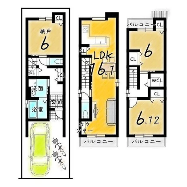 1F:26.15㎡ 2F:31.62㎡ 3F:29.16㎡