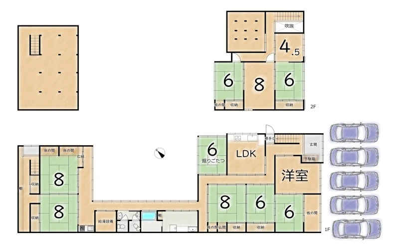 | 設備 | 上水道、下水道、電気、都市ガス、給湯、堀こたつ、中庭 | ||