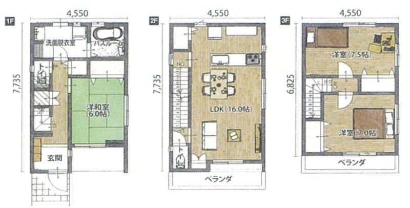 1F:31.46㎡ 2F:33.95㎡ 3F:31.05㎡