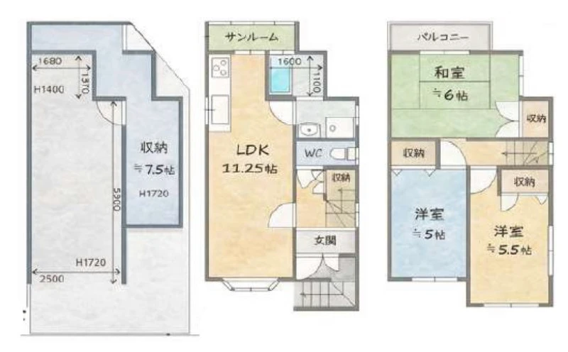 | 設備 | 都市ガス、上水道、下水道、ビルトインガレージ、システムキッチン、追焚機能、温水洗浄便座、電気、南面バルコニー、サンルーム、シャンプードレッサー | ||