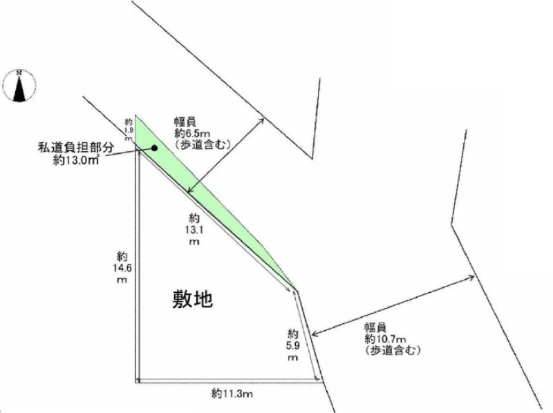 | 土地面積 | 102.6㎡ | 私道面積 | 13㎡ |