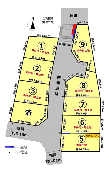 ※境界ブロックの段数や仕上げは売主の指定となります。 ※電柱(支線含む)・ゴミ置場の位置については、関係団体の指示に従っていただきます。 ※覚書道路有(詳細別途) ※開発許可番号:第5170号、変更許可番号:変第2196号、変第2203号 |