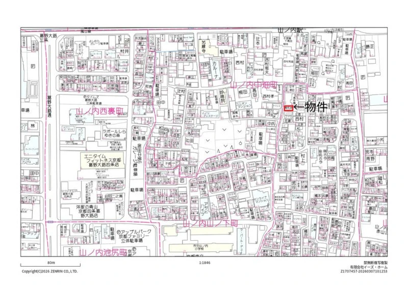 ※地図上の「対象地」は「京都府京都市右京区山ノ内瀬戸畑町 」付近を示しています。実際の場所ではない場合がございます。詳しくはお問い合わせください。