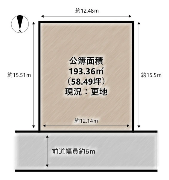 一方 北 間口12.14m 公道 幅6m 位置指定無 |